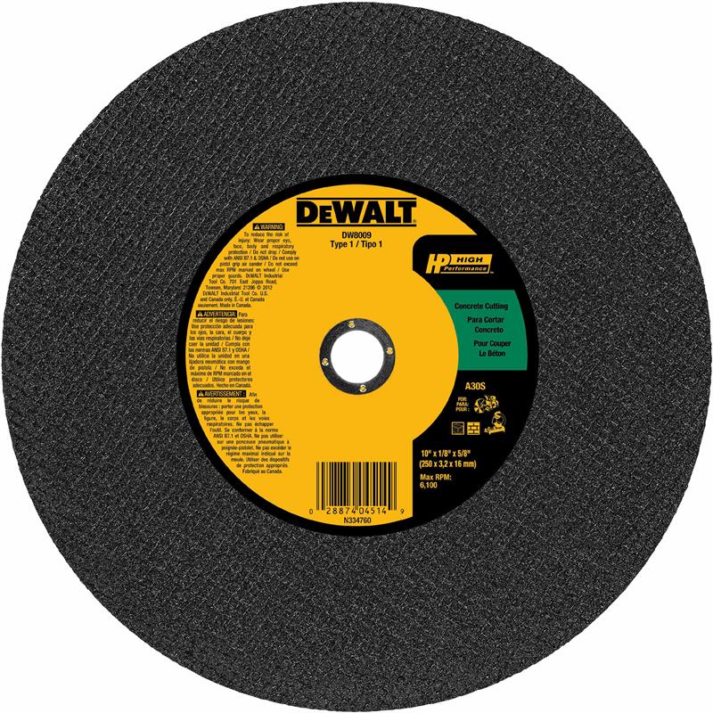 Powered by a high-concentration, premium silicon carbide grain for fast cuts and smooth-running wheels, DEWALT Type 1 HP Masonry Cutting Stationary & Chop Saw Wheels feature a proprietary material mix for long wheel life. 2 full sheets of fiberglass deliver durability and safety.