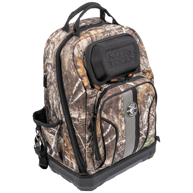 Klein Tools' Tradesman Pro™ XL Camo Backpack features the REALTREE Edge® Camouflage Design, which blends perfectly year-round in a variety of habitats, and looks great on the jobsite too. This seriously tough backpack provides the perfect amount of storage and features to get you through your day. The innovative curved, fully-molded bottom design provides maximum comfort while helping keep your tools safe from the elements. The front compartment features 6 tool storage pockets for easy access to frequently used small tools, while the large interior has 27 pockets with plenty of room for large tools and equipment and unzips to fully open for easy access. The USB-C cord and exterior port make it easy to charge your devices at any jobsite.