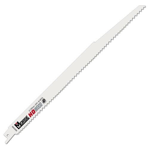 Morse RB125006T50 (402149), 12" x 6 tooth, bimetal reciprocating saw blade is specifically designed for cutting all types of wood, nail-embedded wood and wood composites. Tapered blade body eases the ability to plunge cut. Reinforced tooth profile resists premature tooth strippage in nail-embedded wood applications. Heavy duty, .050" blade thickness provides rigidity under heavier feed pressure. Fifty (50) blades per pack.