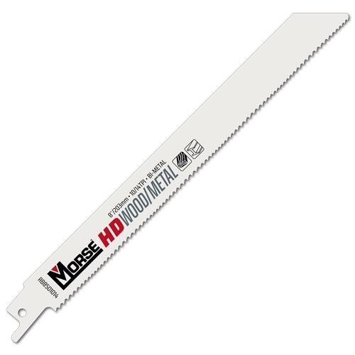 Morse RB8501014T50 (402064), 8" x 10/14 variable tooth, bimetal reciprocating saw blade is designed for cutting a variety of materials, from wood to metal, with various thickness, from 1/4" to 1/2". Straight blade body reduces blade deflection, under feed pressure. Heavy duty, .050" blade thickness provides rigidity under heavier feed pressure. Fifty (50) blades per pack.