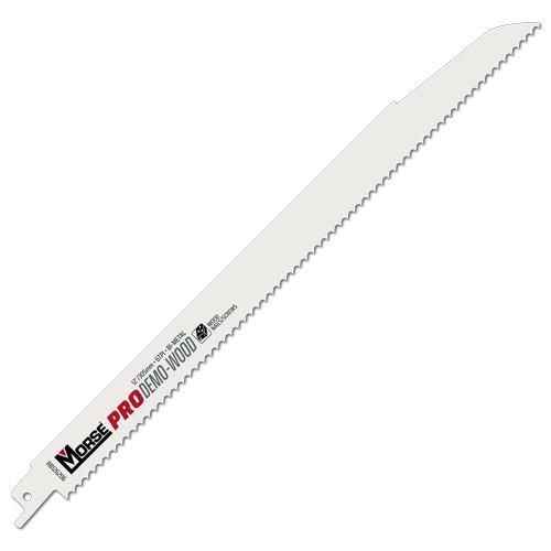 Morse RB126206T05 (406345), 12" x 6TPI, bimetal reciprocating saw blade is designed for general "roughing-in" and demolition applications. With a thicker, wider blade body, this blade can withstand faster, aggressive cutting from heavier feed pressures. Impact resistant tooth profile promotes longer blade life, when encountering multiple materials and thickness within a cut. Five (5) blades per pack.