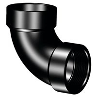 The NIBCO® ABS DWV 90-degree elbow is used in residential and commercial drain, waste and vent systems.