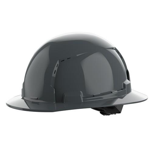 For More Information on the BOLT™ Gray Full Brim Vented Hard Hat w/4pt Ratcheting Suspension(USA)- Type 1, Class C,