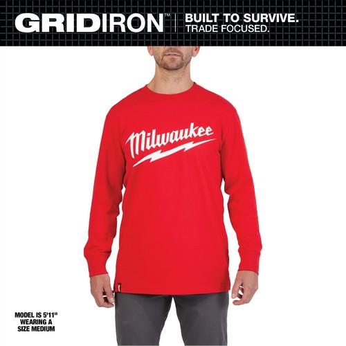 milwaukee 608R 2X heavy duty tee long sleeve logo red 2x | Construction Tool Service