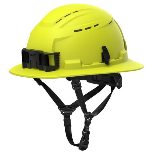 milwaukee 48 73 1676C bolt hi viz green full brim vented safety helmet w fr chinstrap type 2 class c custom logo | Construction Tool Service