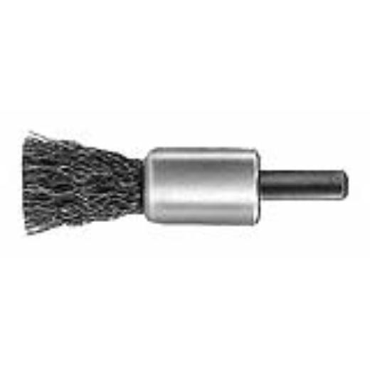 For pipe cleaning, deburring, removing hard carbon deposits from piston heads, cylinders, and valve seats and removing flash, the Milwaukee End Brushes are ideal. This Crimped End Brush has a face diameter of 1/2 inch and is made of .014 carbon steel wire. Milwaukee offers a variety of sizes and wire gauges.