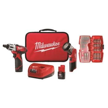 With Milwaukee's M12 2-Tool Combo Kit, you will not only receive the M12 Subcompact Screwdriver carrying more power, more speed, and the longest runtime compared to other in its class, but you will also receive an the M12 LED Work Light that outlasts and