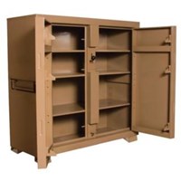 The Model 109 JOBMASTER® Cabinet measures 60 in long, 24 in wide and has a capacity of 47.5 cu ft. This upright cabinet features full-width shelves and offers at-a-glance easy access for tools, equipment and supplies.