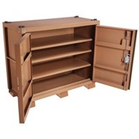 The Model 1020 MONSTER BOX® Cabinet measures 66 in long, 30 in wide and has a capacity of 52 cu ft. This box includes a 4-point crane lift system. This upright box features four full-width shelves in an open design for maxiumum storage and accessability. The low center of gravity provides stability and weather sealed doors protect your investment. This cabinet is ideal for storage and security on the jobsite, workshop or in the plant.