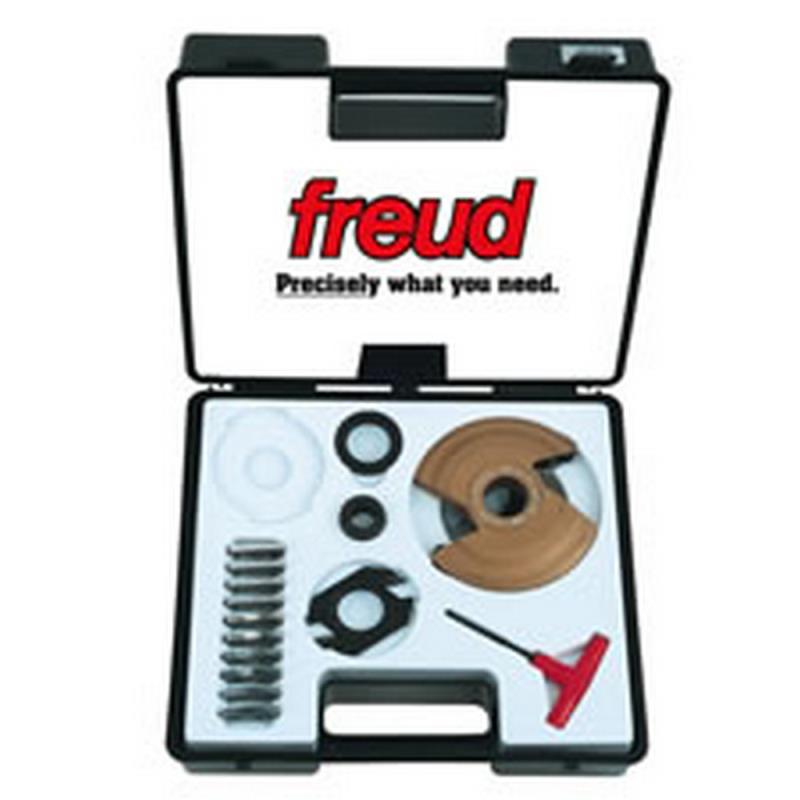 Freud now has a revolutionary system for making cabinet doors. This system combines the flexibility of standard insert tooling with the performance of resharpenable TiCo™ Hi-Density Carbide Knives. This gives cabinet manufacturers the ability to offer over 10 different styles of raised panels for cabinet doors at a fraction of the cost of fixed knife cutters. Plus, these cutters have a specially designed raised panel knife that will leave cross grain cuts as smooth and splinter-free as cuts with the grain. The head is manufactured out of a high grade aircraft aluminum, so weight is kept to a minimum while strength is maintained. The Anti-Kickback Design of the head reduces the likelihood of kickbacks. This raised panel cutter system can be used either with the Performance System® Rail and Stile cutter or with standard fixed wing rail and stile cutters.