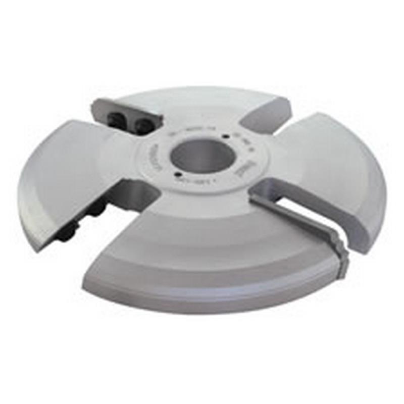 This tool is designed to perfectly cut softwood or hardwood with two knives, with both along the grain or end grain feeding. This result has been achieved by choosing different cutting angles according to the type of wood to be machined. Only two knives are to be fitted on the tool at one time, in opposite direction. The dimensions of the knives for cutting hardwood and softwood are different but the same profile is achieved.