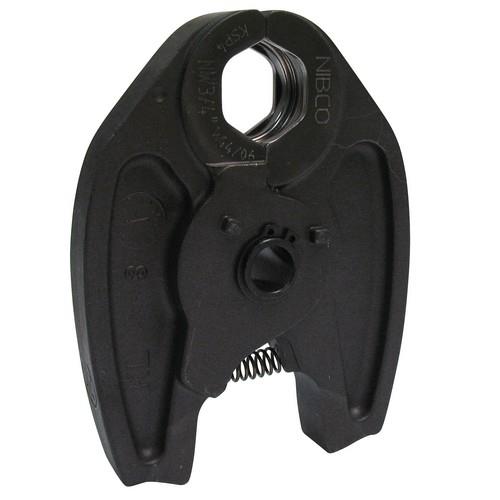 The NIBCO Press System® 1/2-inch mini pressing jaw is intended for use with the PC-20M press tool or the PC-10M press tool. The pressing jaw is installed in the appropriate pressing tool. When the trigger on the p