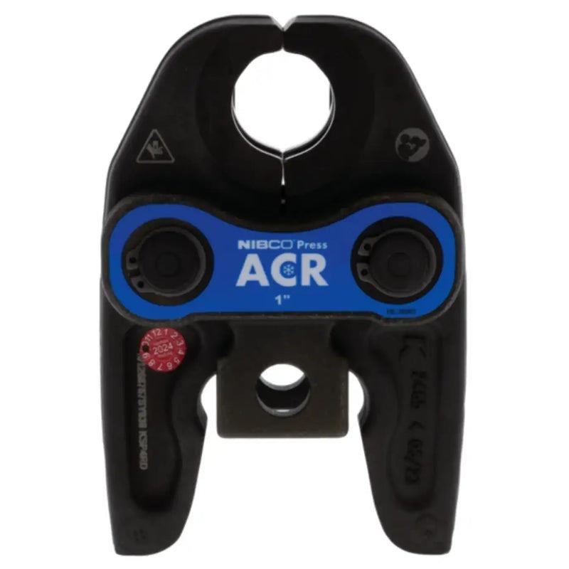 The NIBCO PressACR 1-inch OD standard pressing jaw is intended for use with the PC-280 press tool. The pressing jaw is installed in the appropriate pressing tool. When the trigger on the pressing tool is depressed a crimp is made, and the jaws must close completely to ensure a leak-free connection..