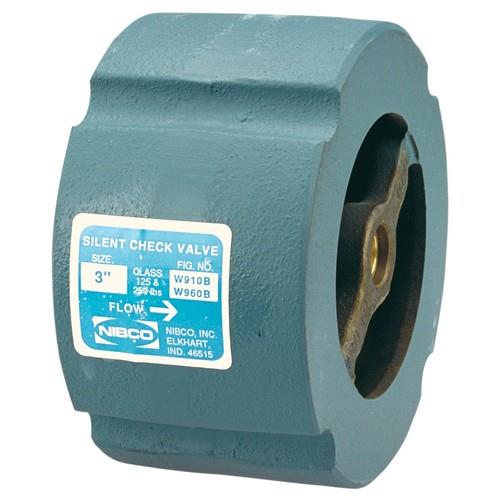 The NIBCO® wafer style silent check valve is spring actuated with renewable bronze seat and disc. The spring return reduces noise for quiet operation. Check valves prevent backflow by automatically closing when